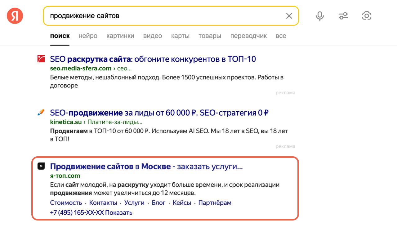 Мой собственный сайт находится на первом месте по запросу "продвижение сайтов". Есть сотни кейсов, где сайты моих клиентов попали в ТОП Яндекса.